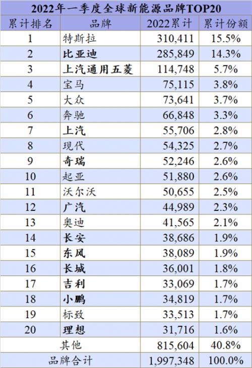 尽管再次被特斯拉挤下冠军宝座,但比亚迪的光芒依旧非常耀眼,3月其单月销量首次达到6位数为104,669辆,这是全球新能源乘用车市场第一次有两个品牌的单月表现同时超过10万辆。而且从一季度的总销量来看,比亚迪并没有被特斯拉甩得太远,仅落后24,562辆。