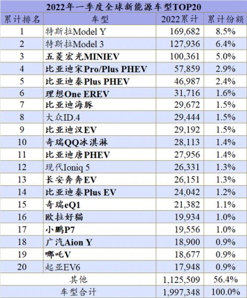 由于1月至3月分别同比增长87.0%、99.0%和60.0%,因此今年一季度全球新能源乘用车市场实现77.0%的增长,累计销量更是达到1,997,348辆。