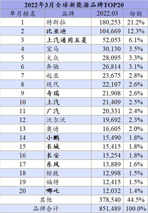 其实,不仅是特斯拉和比亚迪,3月起亚、现代、奇瑞、广汽、长安和哪吒也刷新了自身的新高。比如,在起亚EV6、现代Ioniq5和Aion Y的推动下,起亚、现代和广汽同时首次突破2万辆的大关,前两者的累计排名也分别上升一位。