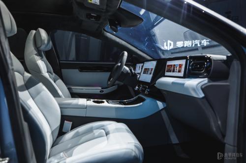 内饰方面,中控台区域新车沿用了零跑C11内的T台型三联屏设计,车机系统拥有12G内存,128G存储空间,支持三屏联动,支持副驾屏独立蓝牙接入,支持音乐三屏互通。并采用高通SA 8155P数字座舱芯片,搭载科大讯飞3.5代语音识别系统,结合高品质麦克风,能识别大多数自然语音命令。值得一提的是,车内摒弃了繁杂的物理按键,集成触控操作,进一步提升车内的科技感。