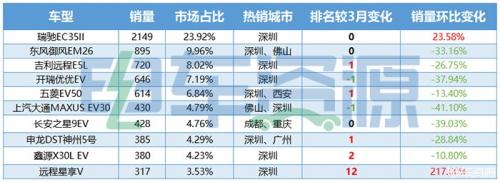 3.瑞驰EC35II、东风御风EM26和吉利远程E5L三款车为销量榜单前三