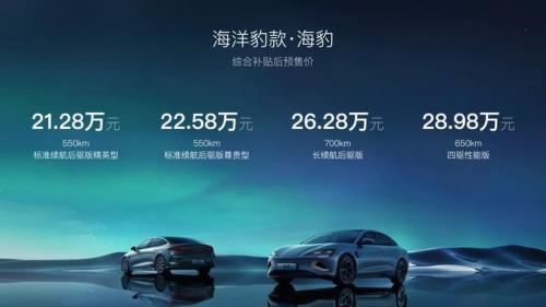 汽车信息网5月27日讯5月20日,比亚迪海洋系列第二款新车——海豹开启预售,预售价格为21.28-28.98万元。海豹诞生于比亚迪e平台3.0,通过加持iTAC智能扭矩控制、四驱和前双叉臂+后五连杆悬架系统,零百公里加速仅需3.8秒,是一台名副其实的高性能轿车。更值得一提的是,海豹不仅加速快而且操控稳。