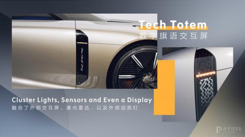 车侧的数字旗语交互屏融合了外部交互屏、激光雷达以及外部迎宾灯的功能,与车身高度相匹配,实现体验与设计的一体化。侧面通过较为凌厉的棱线,搭配富有肌肉感的型面设计,呈现出独特的立体光影。车身尺寸方面,新车长宽高分别为4935/2030/1400mm,轴距为2930mm。