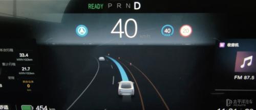 仪表盘显示车速、能量余值、温度、来电等信息