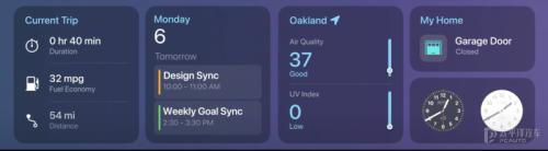 苹果熟悉的小组件,现已加入苹果全家桶。小组件从手机、到iPad,再到MAC电脑,已经是更新换代的老演员了!这次也依旧出现在CarPlay的换代当中。