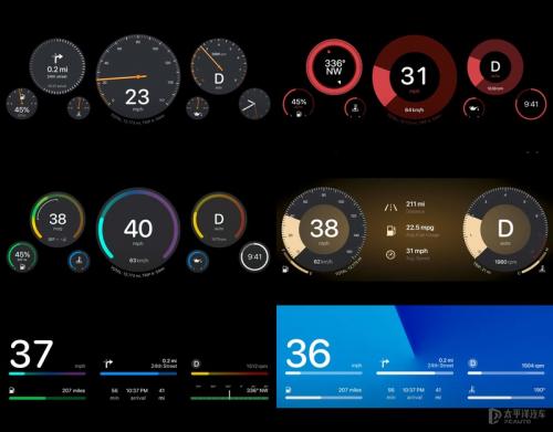 通过获取的车辆信息,实现不同仪表盘的展示,其实是这次CarPlay升级的最大亮点。也是占用苹果宣传视频解说时间最长的一项。