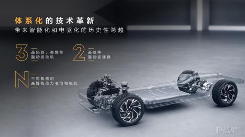 该技术提供了EM-F(HEV)、EM-P(PHEV)两种动力形式,其中EM-P可实现两驱/四驱、标准/长续航/超长续航等不同产品配型,除了率先推出四驱180公里(WLTC)纯电续航产品之外,还有WLTC纯电续航60公里、100公里、150公里(四驱)等更多不同版本插电混动产品。