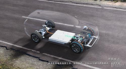在行驶工况方面,车辆同样可以实现纯电、串联以及并联的混动模式。纯电模式是由最大输出扭矩320N·m的P2电机单独驱动车辆;串联模式下,发动机通过P1电机给电池组充电,P2电机负责驱动车辆;并联模式下,发动机直接驱动车辆,电动机会在适当时候提供动力补充。