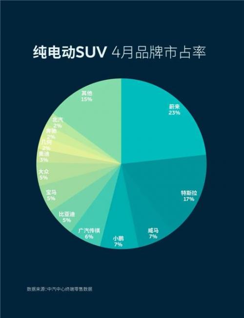 并且从市占率统计结果来看,4月纯电SUV品牌中,蔚来以23%的表现,超越特斯拉的17%,拿下榜首位置。但是必须承认,实现反超的更多原因,还是由于这家美国车企正在经历传统意义上的销售淡季,以及战略节奏上的调整。其官方也表示,“Model Y生产线在4月份曾停产两周以升级产线设备,销量也因此而产生波动。”