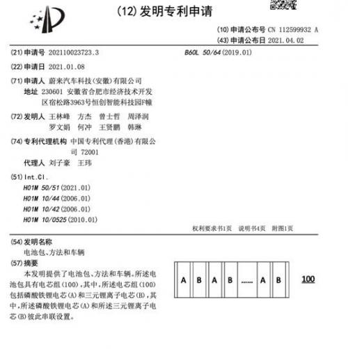 熟不知,就在近日,悄然发现蔚来已经申请一个令人感到“惊喜”的专利技术。总结下来,就是将LFP磷酸铁锂电池,与NCM三元锂电池按比例融合,做出一整套拥有双体系的电池包。至此,一定程度上坐实了此前不断被爆,蔚来将要“铁了芯”的传闻。