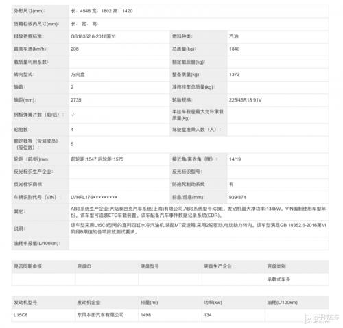 此外,该车还采用了熏黑的贯穿式尾灯设计,点亮后将会带来极强的辨识度。车身尺寸方面,新车长宽高分别为4548/1802/1420mm,轴距为2735mm。