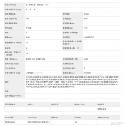 日前,我们从工信部网站获得了五菱征程纯电动版的申报信息,该车的外观与燃油版的造型基本一致,仅在细节方面进行了修改,动力方面搭载了100kW的驱动电机。