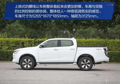 车身尺寸方面,长宽高为5265*1870*1850mm,轴距为3125mm,整体尺寸还是非常标准的,而且它的离地间隙可以达到230mm,接近角做到了28°,离去角25°,所以说它的通过能力还是完全不用担心的。