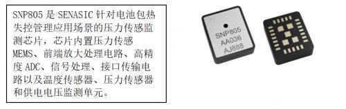 热失控情况下,电池包内部会发生多种化学反应,引起压力烟雾异常、温度上升等,最终导致电池外壳破裂,大量的热量和气体随之迸发出来,相邻的电池也会被迅速感染,相继出现热失控。一旦发生,将无法停止,因此热失控重在检测和预警。SNP805系列产品是一款空气压力测量传感器,能够实时监测电池包的压力变化,当压力变化超出正常范围时,提前发出预警。