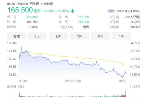 6月29日午间,蔚来汽车在新加坡交易所申请停牌,截至当日13时,其在新交所股价下跌8.47%,而后虽然蔚来申请解除了交易停牌,但其股价仍继续下跌,当日收盘跌幅扩大至11.42%。同天,蔚来港股收盘跌幅11.36%,美股盘前跌幅超过7%。