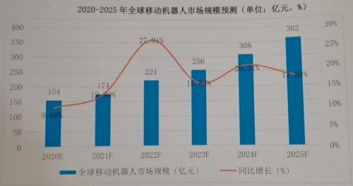 从市场规模看,据高工机器人产业研究所(GGII)发布的《2020年协作机器人产业发展蓝皮书》显示,2019年全球移动机器人市场规模达139.5亿元人民币,同比增长5.68%。GGII认为,全球移动机器人的潜力处于待释放的前夕,据预测,至2025年全球移动机器人市场规模有望突破360亿元。中国区增长则更为迅速,据预计,2020-2025年中国移动机器人市场规模年均复合增速超23.5%,至2025年市场规模有望突破90亿元。