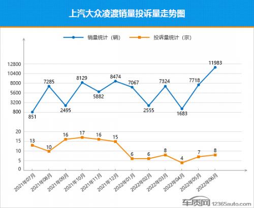 自2014年推出后,被上汽大众定义为“首款宽体轿跑车”的凌渡市场表现不俗,连续多年保持月销破万的销量成绩。不过在2019年后,凌渡的销量开始逐年走低,连续3年的年销量低于10万辆。今年4月,伴随着凌渡换代车型的上市,这款曾经火爆的时尚小车再度回归大众视野。从其近一年来的销量走势可以看出,波动十分明显,但从2022年4月换代车型上市后,销量呈现出阶梯式增长。6月份,凌渡的月销量时隔3年多再次回归“万辆俱乐部”,创造了近一年来的月销量纪录。今年1-6月,凌渡的累计销量38,330辆,较去年同期上涨69.6%。相比销量的高调上扬,凌渡的月投诉量已经连续6个月保持在个位数,整体口碑表现呈现出向好趋势。随着换代车型陆续进入市场,未来凌渡的市场表现也有望进一步走强,但距离恢复巅峰状态还有很长一段路要走。