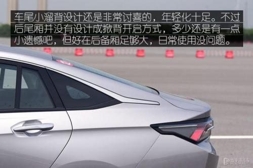 轮圈多条幅式的设计,和整体造型比较搭配,虽然好看,但还是少了点运动的感觉,轮胎选择了更适合城市道路行驶的静音胎,尺寸也达到了18寸,和同级别车型基本相同。