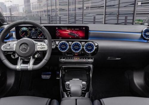 内饰方面,AMG A 35三厢版同AMG A 35两厢版都换用了全新家族化设计,新车标配贯穿式仪表,同时AMG车型不可缺少的运动化三辐式方向盘、AMG独有显示界面、还有运动座椅都将无一缺席的出现在这款新车上。