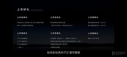 值得提一提的是,官方也同步公布了辅助驾驶软件订阅的价格,高阶辅助驾驶限时优惠价格为20000元,包括NID3.0和APA7.0系统;此外,在这次上市发布会前下订的客户享受先达好礼,包括超长质保、充电礼和基础流量优惠包等;当然,上市发布会后30天内下订的用户同样也有购车优惠。