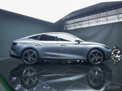 车身侧面,新车采用溜背造型将流畅的顶部曲线与后肩线完美呼应,让整车重心下压,最终收尾于尾灯处。其中第一段肩线顺接日行灯,跨越前轮包顶点后向下坠落,在后门处上挑。第二段肩线则是从后门把手开始,向后微微下坠,构建出强健有力的后肩形面。车身尺寸方面,新车长宽高分别为4884/1889/1447mm,轴距为2778mm,并提供18英寸和19英寸轮圈可选。