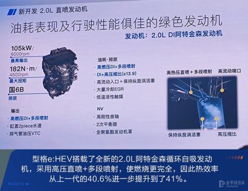这个全新发动机还采用了缸内直喷,采用350Bar高压和最多4段喷射让汽油更加微粒化、更均质化、更精准地喷射在汽缸内,使燃烧更完全,因此热效率从上一代的40.6%进一步提升到了41%。