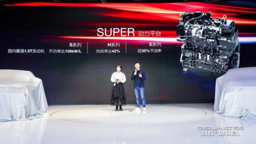 其中,SUPER动力平台具备S(劲)、U(智)、P(静)、E(省)、R(韧)五大优势,包括三大系列:“S系列”升功率达到109kW/L,堪称国内最强1.5T发动机;“H系列”热效率达42%,大幅领先行业;“E系列”主打混动体验,节油率超35%,完美兼顾动力性与经济性。