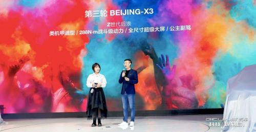 第三轮是1/2场景化的新BEIJING-X3。目标人群是刚毕业的后浪们,他们因爱携手,对于人生首台车,不仅要求自己开的爽,也希望身边爱人得到宠爱。新BEIJING-X3拥有机甲个性化外观,是帮他们获取关注的吸睛利器;138kW/288N·m战斗级动力让后浪们肆意驰骋;公主副驾具备6向电动调节+电动腿托,以及公主储物格、折叠化妆台等,给身边的她极致呵护;14.6寸越级大屏+华为鸿蒙生态,满足影、音、行、住、玩五重娱乐体验,为旅途带来更多乐趣。
