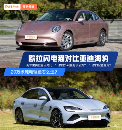 【太平洋汽车导购频道】随着新能源车的普及以及自主品牌的崛起,国产纯电车设计越来越好看,不仅颜高,科技配置和动力都拉爆。瞄准年轻消费群体市场的比亚迪海豹(询底价|查参配)则是其中之一,基于比亚迪e平台3.0技术打造,自上市以来关注度一直很高,销量表现也惊人。当然,长城旗下欧拉品牌也瞄准了这一细分市场,日前带来了一款性能直逼超跑的大号紧凑型车—闪电猫,官方表示百公里加速时间为4.3秒。那闪电猫的出现能否撼动海豹的市场地位?下面,我们来对比一番。