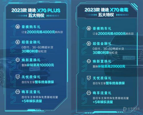此外,捷途官方还推出了购车即享订金2000元抵4000元的豪横购车礼,以及0首付、36-60期超长贷、30期0利息轻松贷超值金融礼,用户尽享0负担提车等礼遇。同时,新车首任车主享整车终身无忧质保礼,首任车主享终身免费基础流量+5年免费娱乐流量嗨享流量礼,以及万元焕新置换礼(捷途X70 PLUS至高10000元,捷途X70诸葛至高20000元)等福利。