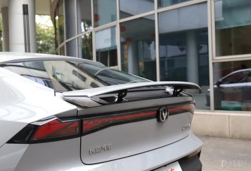 车尾处,内凹的处理和贯穿式尾灯的应用,刻画出明显的层次感。底部双边共双出的外露式排气口以及造型颇为硬核的后扩散器,进一步强调了它的运动感,而1.5T运动版及2.0T车型的双边共四出排气更是如此。最让人感到惊喜的,还要数那个同级独有的电动尾翼,它的存在,无疑是UNI-V的一个“超级符号”,当它打开时,可以在瞬间将这台车的格调拉高,毕竟,这往往是超跑才有的配置。