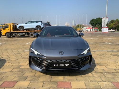 外观部分,MG7整体造型富有运动感,前脸部分采用大尺寸熏黑设计进气格栅,位置更靠下,看上去力量感十足,其内部造型源于猫科动物的爪形。两侧的大灯造型则源于猫科动物的瞳孔,极具进攻性,灯组内部也采用了LED光源,灯光效果酷炫、照明效果良好。