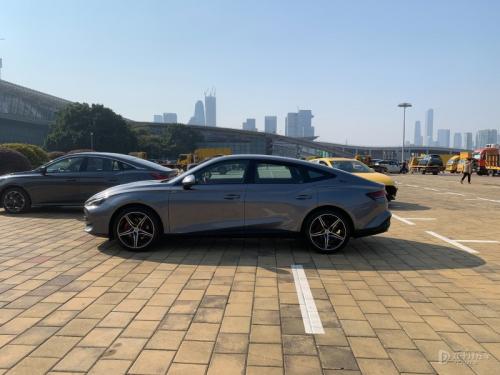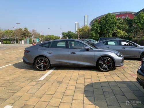 车身侧面,新车采用溜背造型将流畅的顶部曲线与后肩线完美呼应,让整车重心下压,最终收尾于尾灯处。其中第一段肩线顺接日行灯,跨越前轮包顶点后向下坠落,在后门处上挑。第二段肩线则是从后门把手开始,向后微微下坠,构建出强健有力的后肩形面。车身尺寸方面,新车长宽高分别为4884/1889/1447mm,轴距为2778mm,并提供18英寸和19英寸轮圈可选。