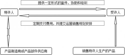特许经营是指特许经营权拥有者通过签订相应合同条款,授权被经营权使用者有偿使用其商标、名称、设施设备、运营团队等进行经营活动的商业模式。特许经营可以分为商品或商标型和经营模式两种类型,二手车特许经营属于商品商标型的模式,如下图所示。特许人必须是具有二手车经营品牌,受许人对其品牌或商标具有使用或开发的权利,但是其仍然保留商标的所有权。受许人或使用者必须得到授权人的许可,才能够使用相应商标或品牌,并定期向授权人支付一定的费用。