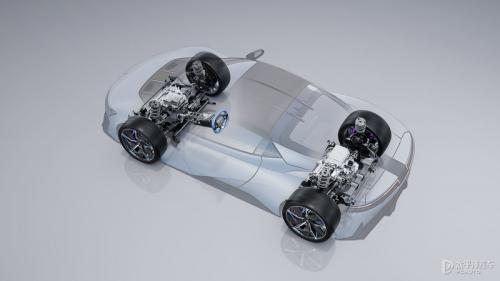 电驱系统采用900V高压方案,源于高铁的同款新型半导体材料碳化硅打造的高端碳化硅芯片,可以令工作频率提高2.5倍,功耗降低80%,统筹前后三电机四驱系统兼顾超跑高功率、高扭矩、高转速、高效率的需求。