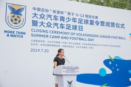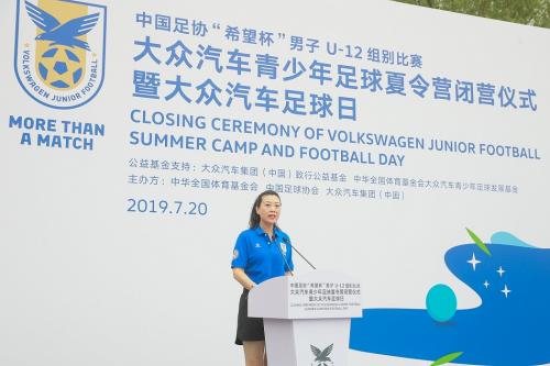 中国汽车新闻网讯7月20日,大众汽车集团(中国)携手中华全国体育基金会、中国足球协会共同发起的“大众汽车青少年足球夏令营暨中国足协‘希望杯’U12组别比赛”在国家奥林匹克体育中心圆满落幕。中华全国体育基金会副理事长薛万河、中国足球协会副秘书长兼市场开发部部长刘洁、大众汽车集团(中国)企业社会责任部高级总监殷进、前国家队队员和德甲名人堂成员邵佳一,一同出席闭幕式及“大众汽车足球日”活动。在为期5天的夏令营比赛中,来自中国足球协会下设的12家青训中心的青少年球员开展了30场紧张激烈的对抗赛。