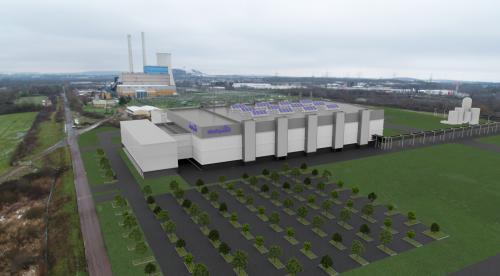 位于德国萨尔州恩斯多夫退役燃煤电厂旁的Wolfspeed和采埃孚共同打造的200毫米碳化硅半导体工厂效果图