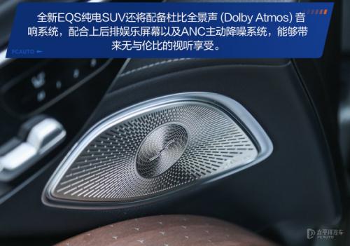 全新EQS纯电SUV搭载的15个扬声器的Burmester柏林之声音响总功率710kW,配合ANC主动降噪系统,每次听音乐都是一种享受,并且门板上靠近A柱的位置还有一个音响,开车的时候会反射倒影到玻璃上,高级感拉满。