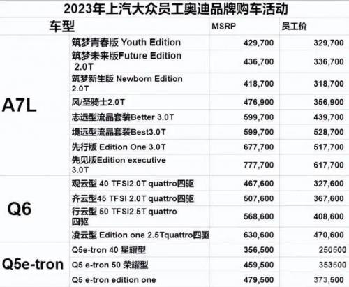据二手车小胖说公众号报道,3月6日消息,近日网上传出了一张上汽奥迪员工内购活动表单。此表单一出,立刻在网上引起了很大的轰动。