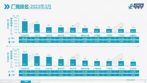 3月厂商零售销量排行TOP10,比亚迪汽车夺得桂冠,一汽大众亚军,长安汽车季军,本田、东风日产、长城汽车、奇瑞汽车都无缘上榜。