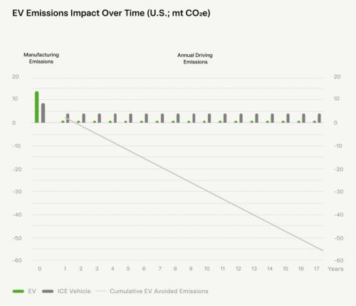 但根据特斯拉数据,纯电动汽车行驶两年之后,总碳排放就会低于燃油车,此后每年碳排放也低于燃油车。