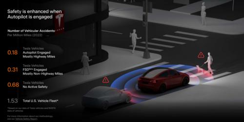 平均每100万英里发生事故数:开AutoPilot的特斯拉用户0.18次、FSD Beta用户为0.31次、没有主动安全功能的特斯拉0.68次,总之都与行业平均每100万英里1.53次事故相比表现优秀。