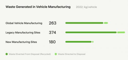特斯拉的数据是全球每生产一辆车平均产生263kg废料,特斯拉在北美的旧工厂每生产一辆车产生374kg废料。