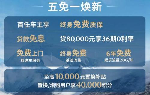 除了颇具诚意的售价,CX-50行也还为用户带来了“五免一焕新”的购车权益,包括了首任车主享终身免费质保,免费上门取送车;贷款80000元享36期0利率;至高10,000元置换补贴和40,000积分;基础流量终身免费;娱乐流量6年免费(20G/年)等一系列优惠政策。