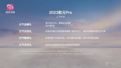 【太平洋汽车新车频道】日前,比亚迪2023款元Pro(询底价|查参配)正式上市,新车售价区间为9.58-11.38万元,共推出3款车型,共有320km和401km两种续航。另外,购车用户可享受金融礼、无忧礼、智联礼、充电礼等多重优惠政策。