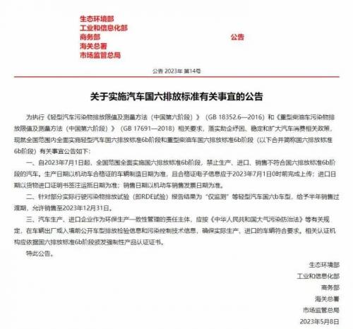 日前,生态环境部、工信部等部门近日联合发布公告,自2023年7月1日起,全国范围全面实施国六排放标准6b阶段,禁止生产、进口、销售不符合国六排放标准6b阶段的汽车。国六b的时代马上就要来临了。相比起之前国四、国五标准的切换,不少人似乎也在期待着车市像过去一样有一波降价潮来抄底捡漏。