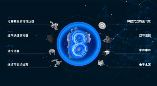 通过电子水泵、Fast VVT、钟摆式双质量飞轮、连续可变机油泵以及水冷中冷系统、低张力正时传动系统、以及轴颈尺寸优化、减摩擦涂层等多项技术措施的组合运用,使得摩擦损失降低21%,整套动力系统高效运转区域提升30%。