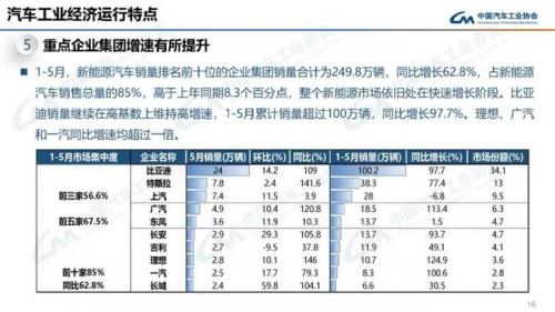 得益于新能源车型的贡献,在5月,中国品牌乘用车销量为109.9万辆,同比增长37.6%,市场份额为53.6%,上升4.3个百分点。1-5月,中国品牌乘用车销量为478.1万辆,同比增长22.7%,市场份额为53.1%,上升5.2个百分点。