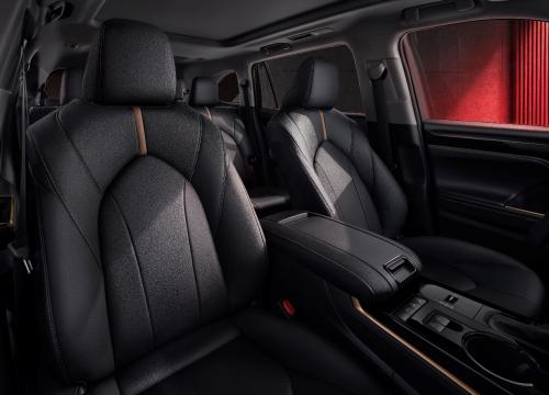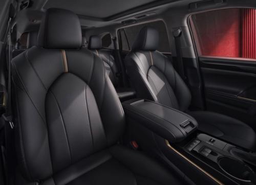 内饰方面,配备骑士版专属的高级真皮+合成皮座椅,搭配铂青铜色饰条和缝线,中控饰条采用斑驳金属风格设计,充分彰显汉兰达骑士版车主的专属身份。