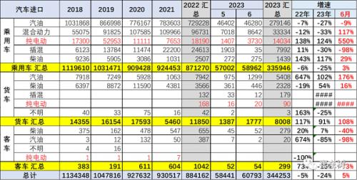 新能源方面,崔东树认为,近期新能源乘用车市场表现较强,进口纯电动车市场同样优秀,上半年增速达到124%。但燃油、混动及插混进口乘用车市场均有两位数下滑。